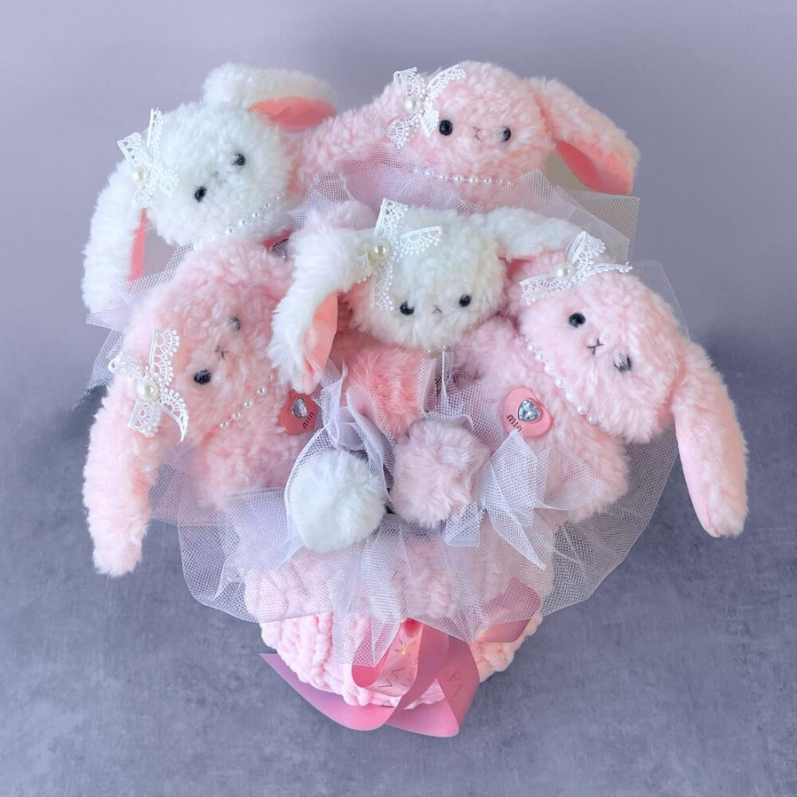 Букет из игрушек зайчат в платье